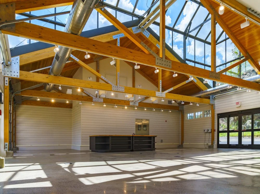 We are proud that our design team was able to achieve the design goals of this project. We love the final form of this structure, it offers a refreshing take on how a farm stand should look and feel. The original structure was demolished to build a replacement on the same footprint. The new building integrates a greenhouse roof as the building focal point. The central path provides a dramatic new entry to the garden center. The natural light brought in by the greenhouse roof with full height gable ends results in an open and spacious feeling. The timber truss roof design yields a bigger volume, creating a grand look and rustic feel for the customers, inviting them in to have a look around and enjoy an enhanced shopping experience.